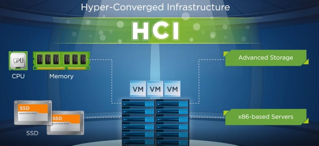 Hyper-Converged Infrastructure (HCI) combines common datacenter hardware using locally attached storage resources with intelligent software to create flexible building blocks that replace legacy infrastructure consisting of separate servers, storage networks, and storage arrays.